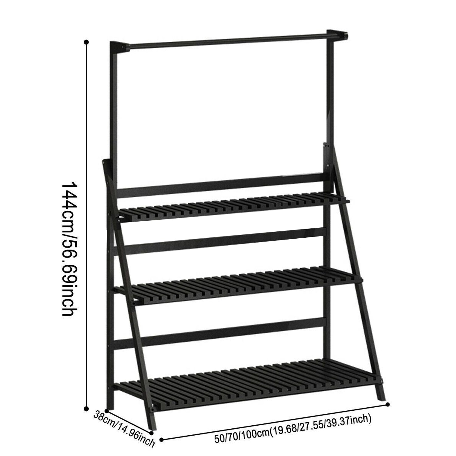- Includes 3-tier stair-floor flower pot stands rack with removable pot hanging rack.