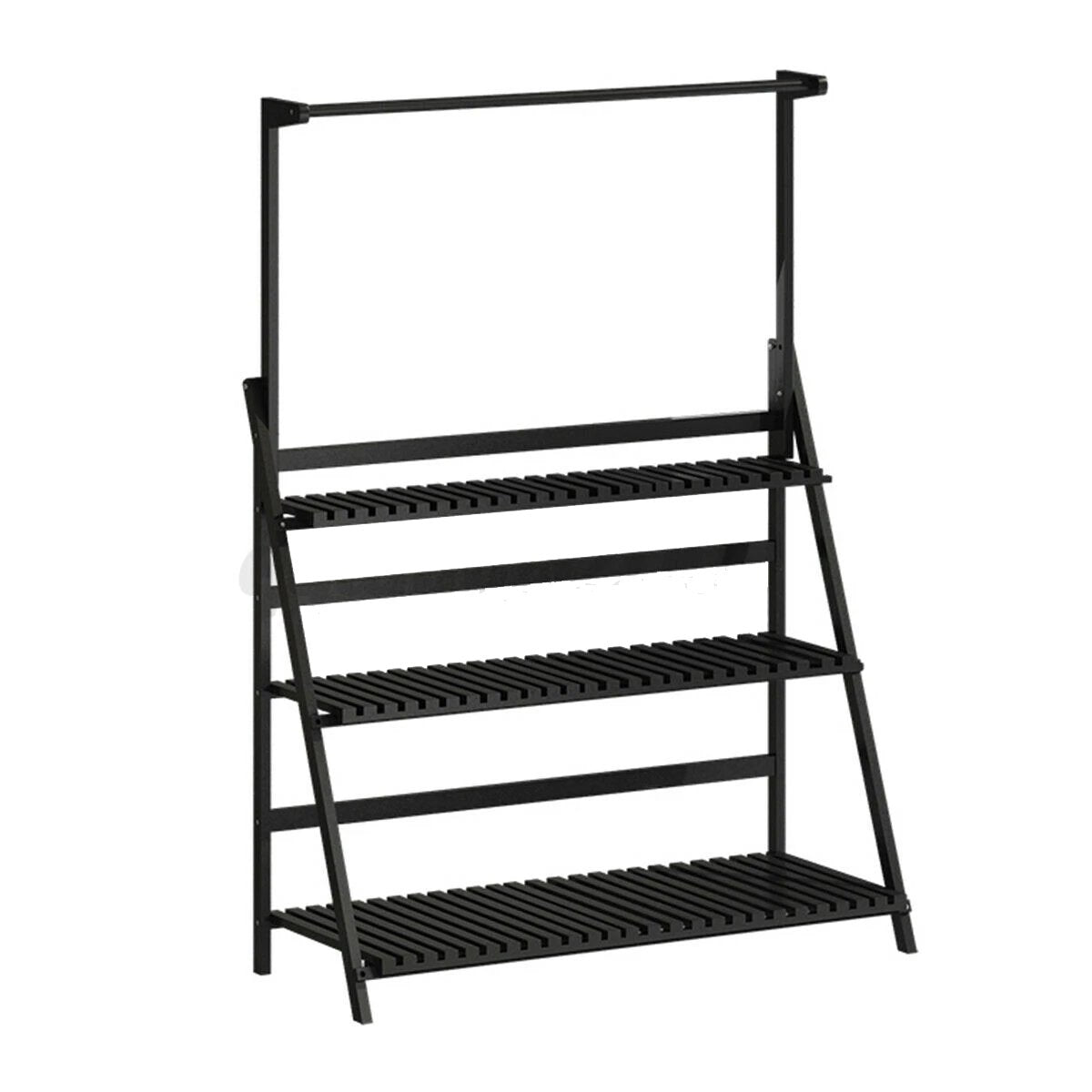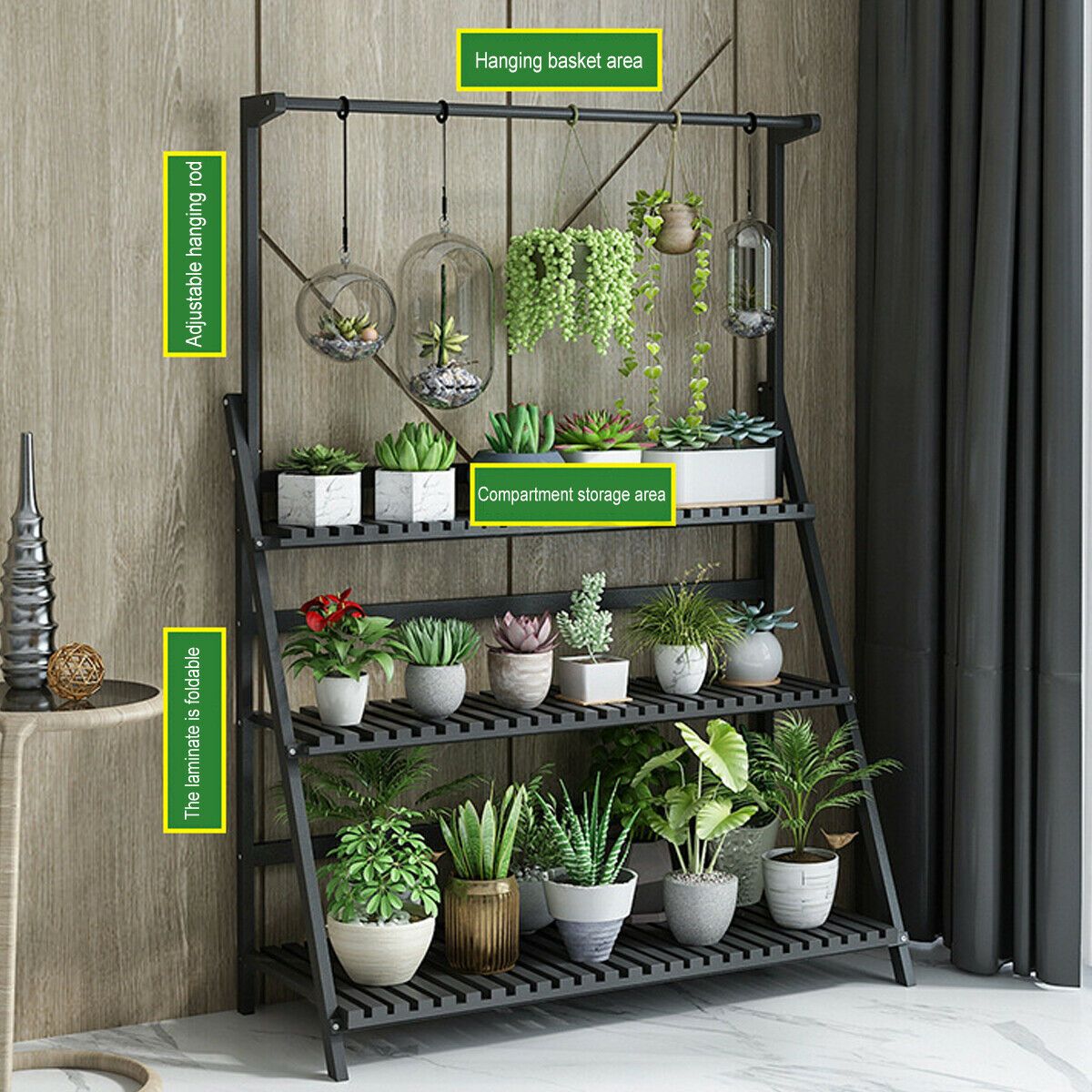 - With this foldable 3-tier stair-floor flower pot stand with removable pot hanging rod, you will enjoy how you can save on space and still have plenty of flowers to show off.
