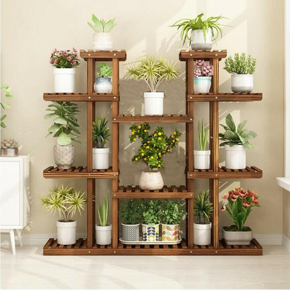 - It is an eco-friendly, sustainable natural resource for its STRENGTH and DURABILITY.Uniform CLEAR GRAIN and color, flower plant stand brings a NATURAL DECOR for home. Display rack is maintenance free and will last for many years.Dimensions at 116x115cmx25cm, 1.6in thicken shelf withstand 14lbs per layers.